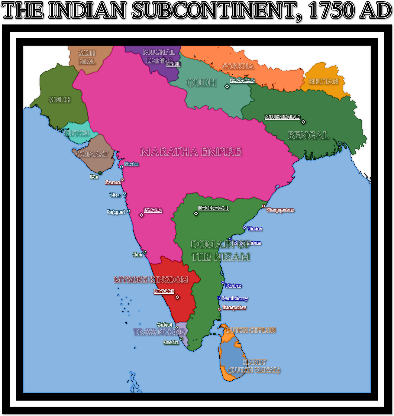 Indian subcontinent in 1750 AD and 1800 AD : r/MapPorn